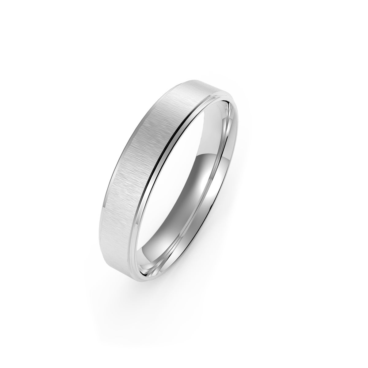 Bosie satiini pintainen titaanisormus, jossa kiiltävät reunat.