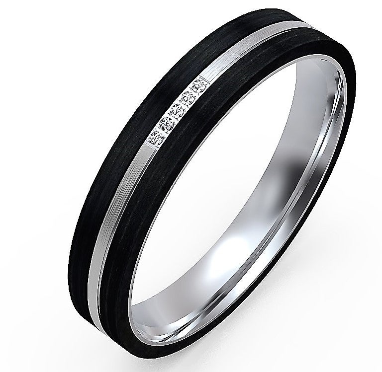Titaaniraita jossa on keskellä viisi zirkonia.
